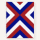 Bold custom notebook features alternating dark red, white, and blue chevrons (V shapes) which converge in an original geometric pattern. You can change the inside paper design to suit your needs (wide ruled, college ruled, graph, sketch, recipe, and others) in the sidebar.