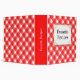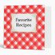 A retro recipe binder with a red and white kitchen plaid background pattern. The front has a white frame with golden scrolls with room to add your family name in retro letters.