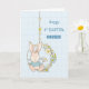 Looking like a little boy, this bunny is so cute, as he swings on a hanging wreath! Customize the relationship to fit your needs as you send this to a special little one on their first Easter!