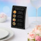 Promote what’s new and boost sales with this customizable black tabletop sign, perfect for restaurants, cafés, bars, bakeries, and coffee shops. le This double-sided paper sign can be fully personalized to fit your needs—ideal for introducing new menu items, featuring signature drinks or desserts, showcasing specials, or advertising limited-time promotions and discounts. Easily upload your logo, photos, and text, and adjust the colors, fonts, and background to match your brand’s style. The versatile layout allows you to display images of featured dishes on one side and your promotional message or restaurant branding on the other, creating a polished and professional tabletop display. Lightweight and easy to place on dining tables, counters, host stands, or bars, this sign helps capture attention and encourage upsells while keeping your marketing fresh and flexible.