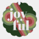 Contemporary classic Christmas holiday season ornament card with light and dark green, pink and red colored abstract pattern and JOYFUL wish text in crisp white. With room to customize or personalize with a family name (or individual names) and a personal season greeting message.