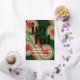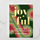 Contemporary classic Christmas holiday season greeting card with light and dark green, pink and red colored abstract pattern with real gold foil JOYFUL wish text. With room to customize or personalize the text on the front, and family name (or individual names) and a customizable season greeting message on the backside of the card.