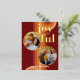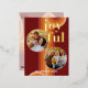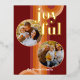 Contemporary classic Christmas holiday season greeting card with light and dark red, coral and pastel peach orange colored abstract pattern with real gold foil JOYFUL wish text. With room to customize or personalize with two photos and family name (or individual names) on the front, and a customizable season greeting message on the backside of the card.