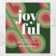 Contemporary classic Christmas holiday season gift label with light and dark green, pink and red colored abstract pattern and JOYFUL wish text in crisp white. With room to customize or personalize with a family name (or individual names) and a personal season greeting message.