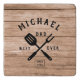 Retro cool personalized "BEST DAD EVER" trivet in a logo-style typography design featuring the dad's name and the year he became a father on a (printed) rustic wood design. Great gift for Father's day or a unique birthday gift for the dad who loves to barbeque or cook.