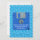 Personalized retirement party invitation card with a blue retro computer floppy disk 3.5 inch. and blue lagoon water as background. Perfect for a new ex-computer engineer or anyone who was an office worker. Available in other models.