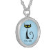 Custom Retro Mid Century Modern Atomic Black Cat Silver Plated Necklace