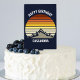 Custom Retro Sunset Mountain Navy Blue Birthday Cake Topper