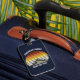 This cool orange vintage sunset over rocky mountains in nature makes a great image for a customized navy blue luggage tag for a family reunion, road trip, or summer vacation outdoors.