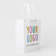 Easily personalize this reusable shopping bag with your own company logo and custom text. This bag is made with polyester fabric and it folds into a pouch with a snap closure. The design accommodates double sided printing. Dimensions are 16 inch (H) x 12 inch ( L) x 5 inch (W). No minimum order quantity and no setup fee.
