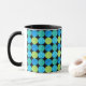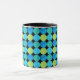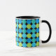 A chic black and white Ringer Mug with a bold Blue Moons 'grid' pattern in Turquoise, Neon Green and Teal on a Black background that you can change if you wish - Blue or White also look good. Part of the Posh & Painterly 'Blue Moons' collection.