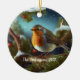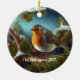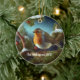Custom robin over a snow-covered tree ceramic ornament