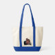 Love the durable cream colored canvas and navy blue contrasted handles. Perfect for carrying my laptop and papers.
