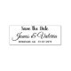 Easily personalize these custom Romantic Save The Date self-inking rubber stamps with your own names and address. To customize these rubber stamps, click on "Personalize this template" and change the text in the boxes provided. Available in 9 different colors and 6 sizes. Please view your design on the monitor as close to actual size as possible to ensure that the text prints at the expected size. For use as a return address stamp most people will require a larger size than this. These return address self-inking rubber stamps stamp up to 10000 impressions with each cartridge, have a soft touch for secure grip and ink-free fingers and an eco-friendly manufacturing process. No minimum order quantity.