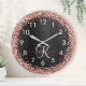 Custom Rose Gold Glitter Black Sparkle Monogram Round Clock