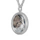 I chose gold plated so that the metal would not react with my skin oils and perspiration. But, I changed the necklace from the gold plated one to a sterling silver. My skin cells will tarnish the silver. But it will not look as bad if some portion of the gold plated necklace somehow became compromised. Zazzle did a find job turning the picture into a pendant for me. As you can see, the colors and the printing of the final product, match the preview. The picture I took is not very clear. But I am pleased with the product I received.