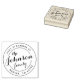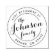Custom return address stamp with family's name in calligraphy script, circled by the address in a modern font. Use for wedding invitations, announcements and holiday cards. To change text size and placement, use the Customize / Personalize button.