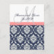 Custom RSVP Navy Damask Wedding Postcard Layout Design by Elke Clarke©. Graphics licensed. Customizable RSVP Damask Wedding Postcard fits with 5 x 7 invitations.