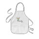 This cute apron for kids is featuring a ruby-throated hummingbird. The font style and size can be changed by clicking on "customize further".