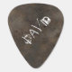 Grungy looking guitar pick done in a rusted metallic steal look. Personalize the scratched looking white text for yourself or as a great little gift idea.