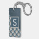 Custom Rustic Dark Blue Brown Stripe Plaid Pattern Keychain