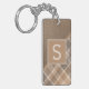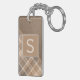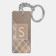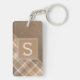 Custom Rustic Dark Brown Tan Beige Plaid Pattern Keychain