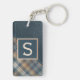 Custom Rustic Dark Teal Blue Stripe Plaid Pattern Keychain