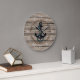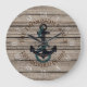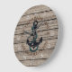 Vintage blue anchor with teal green colored rope on antique weathered wooden planks pattern motif. With room to customize with family name and established date of your choice. Ideal for a rustic wood log cabin look in your bedroom, hallway, living or family room, kitchen, man cave, or mountain lodge.