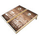 Celebrate lakeside living with this rustic dual-design set. One board features the playful phrase “Lake It or Leave It” with sunglasses and a paddle, while the other offers a heartfelt reminder to “Collect Moments Not Things” with a kayaker and nautical elements. A dark wood background adds a cozy, outdoor vibe. Personalize with your family name and established year.