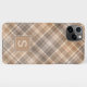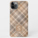 Contemporary tan, brown, beige, taupe, and ivory cream white tartan plaid pattern. With room to customize or personalize with a monogram or initial of your choice. Beautiful, modern, and cool cover for the trend-savvy and art-loving hip trendsetter, artsy motif lover who wants to protect their phone from dust and dirt, wear and tear. This design is available in Apple iPhone 6, 7, and 8 Plus, 10 or X, XR, XS, 11, 12, 13 Mini, 14, 15 Plus, and Pro Max cellphone cases. Show off your style, look fashionable trendy, and feel stylish with a unique design on a mobile device accessory of your choice.