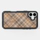 Contemporary tan, brown, beige, taupe, and ivory cream white tartan plaid pattern. With room to customize or personalize with a monogram or initial of your choice. Beautiful, modern, and cool cover for the trend-savvy and art-loving hip trendsetter, artsy motif lover who wants to protect their phone from dust and dirt, wear and tear. This design is available in Apple iPhone 6, 7, and 8 Plus, 10 or X, XR, XS, 11, 12, 13 Mini, 14, 15 Plus, and Pro Max cellphone cases. Show off your style, look fashionable trendy, and feel stylish with a unique design on a mobile device accessory of your choice.