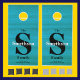 A bright, turquoisey blue wood look offers a bright cornhole board game to take on all your rivals. Your monogram is in a bold black font and is crossed by your family name in a silvery gray. The remainder of the text is in black: "The", "Family", "Established 20xx" and "city and state". The text has an elegant classic vibe and is a great gift for housewarmings and anniversaries. It's great entertainment for all your gatherings. Bring the trash talk and let's party. We've chosen black and silvery gray bean bags to accompany this striking set, but be sure to choose your own favorite colors as you personalize the design.