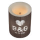 Custom monogram wood grain panel LED candle light.