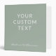 This stylish custom binder features a simple minimalist design of your text and name in a beautiful handwritten script lettering in white on a sage green background.