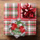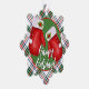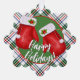 Unique, classic, cute, and decorative Christmas holiday ornament card with Santa's red mittens on a classic red, green, white and blue tartan pattern background and classic Happy Holidays quote text. With room to customize or personalize with family name, greeting, or wish of your choice.