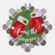 Custom Santas Mittens On Red Green Plaid Pattern Ornament Card