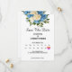 Announce your special day in style with our personalized dusty blue and ivory floral save the date. Featuring a beautiful watercolor illustration of roses, this elegant card is perfect for adding a touch of romance to your wedding planning. Customize with your names and wedding details.