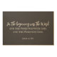 Create an inspirational modern script wall hanging wooden plaque. All the stylish typography is editable for your own custom inspirational scripture art. The natural grain of the wood will shine through these letters. The background color is a solid dark grey with the wood grain behind it. "In the beginning was the Word, and the Word was with God, and the Word was God." is a Christian Bible scripture verse taken from the Gospel of John 1:1. This scripture verse refers to faith in the Creator God and the Word is Jesus. Customize this natural wooden art with your own words if desired. Check the spacing on your final product for satisfaction.