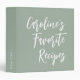 Custom Script Lettering Modern Recipe Dusty Sage 3 Ring Binder