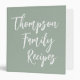 Custom Script Modern Family Recipes 3 Ring Binder in Dusty Sage Green