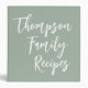 Custom Script Modern Family Recipes Dusty Sage 3 Ring Binder