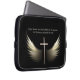 Christian religious cross with the wings of the Holy Spirit and personalized Scripture verse in gold and white on black. Leave the Bible verse as is or type in your favorite religious passage. Laptop sleeve computer cover reads "O give thanks unto the LORD; for He is good. For His mercy endureth for ever." You may change this verse if you prefer.