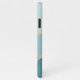 Contemporary girly teal blue and ocean seafoam green colored striped cell phone case. With room to customize with a name, monogram, or initials of your choice. Beautiful, modern, and cool cover for the trend-savvy and art-loving hip trendsetter, artsy motif lover who wants to protect their phone from dust and dirt, wear and tear. This design is available for Apple iPhone 6, 7, and 8 Plus, 10 or X, XR, XS, 11, 12, 13 Mini, and 14 Pro Max cellphone cases. Show off your style, look fashionable, and feel stylish with a unique design on a mobile device accessory of your choice.