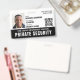 Personalized security ID badge with fully customizable text. This editable template includes your ID photo, name, job title, ID number, company name, issue date, expiration date, logo and a scannable QR code. All the text can be customized or deleted, so you can tailor it to suit your business. A versatile design that suits many different workplaces and professions, including private security, security guard, security officer, store security, personal bodyguard, official doorman, retail worker, medical staff and more. Printed colors: black and white. Shop the collection for more badges and tags for sale online, designed for the security service industry.
