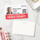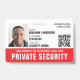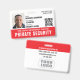 Personalized security ID badge with fully customizable text. This editable template includes your ID photo, name, job title, ID number, company name, issue date, expiration date, logo and a scannable QR code. All the text can be customized or deleted, so you can tailor it to suit your business. A versatile design that suits many different workplaces and professions, including private security, security guard, security officer, store security, personal bodyguard, official doorman, retail worker, medical staff and more. Printed colors: red, black and white. Shop the collection for more badges and tags for sale online, designed for the security service industry.