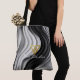 Immerse yourself in the elegance of the "Serene Swirls Custom Tote," a sophisticated accessory crafted for those with a penchant for minimalist beauty. This tote bag showcases an alluring pattern of swirls, flowing seamlessly in shades of gray that whisper the story of calm seas and gentle winds. The mesmerizing design is both a nod to the simplicity of monochrome and a tribute to the complex beauty of motion.