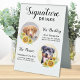 Customize this pet wedding sign with your dog, cat, puppy or kitten favorite photos, names and signature drinks!. COPYRIGHT © 2020 Judy Burrows, Black Dog Art - All Rights Reserved. Custom Signature Drinks Sunflowers Pet Wedding Table Tent Sign