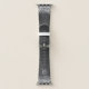 Easily personalize this trendy elegant apple watch band design featuring pretty silver sparkling glitter on a black brushed metallic background.
