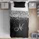Custom Silver Glitter Black Sparkle Monogram Duvet Cover