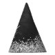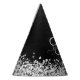 Easily personalize this trendy elegant party hat design featuring pretty silver sparkling glitter on a black brushed metallic background.